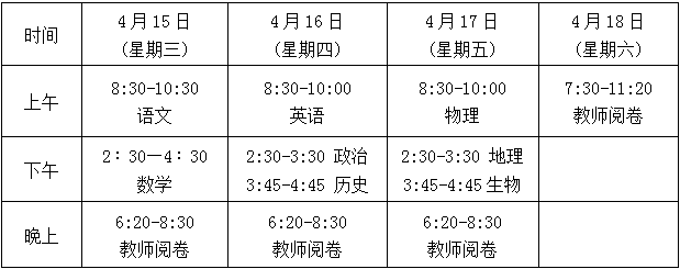 福建西山学校初中部2014~2015学年度第二学期期中考试安排