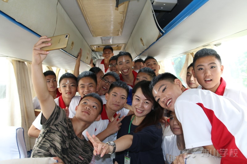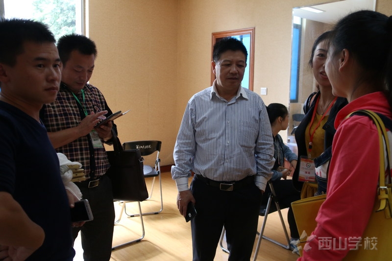 西山学校校长喻勇和初中部校长伍学华来给同学们助威